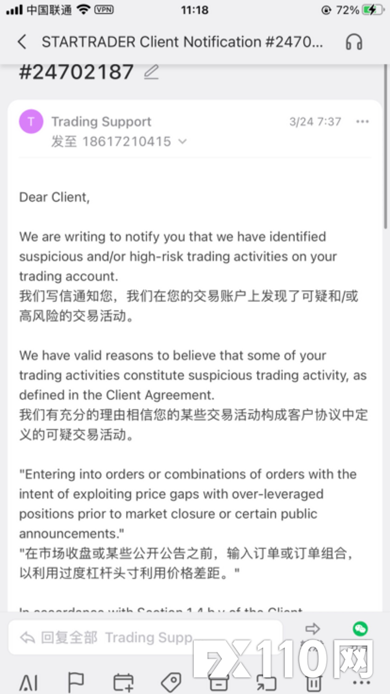 平台: 假冒福汇FXCM
