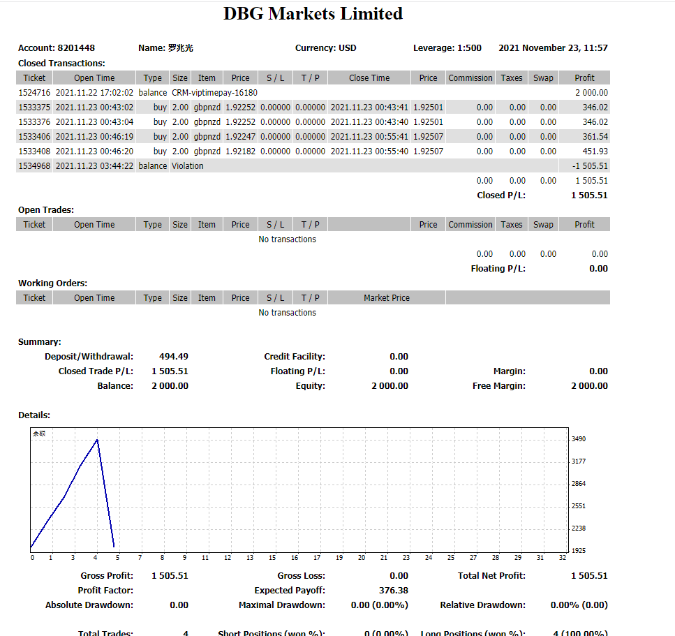 目前,DBG Markets盾博运营团队对于违规套利客户采取宽容的态度,会出其本金。但如果其仍旧不停止该行为,DBG Markets盾博运营团队将升级处理手段,请知悉。