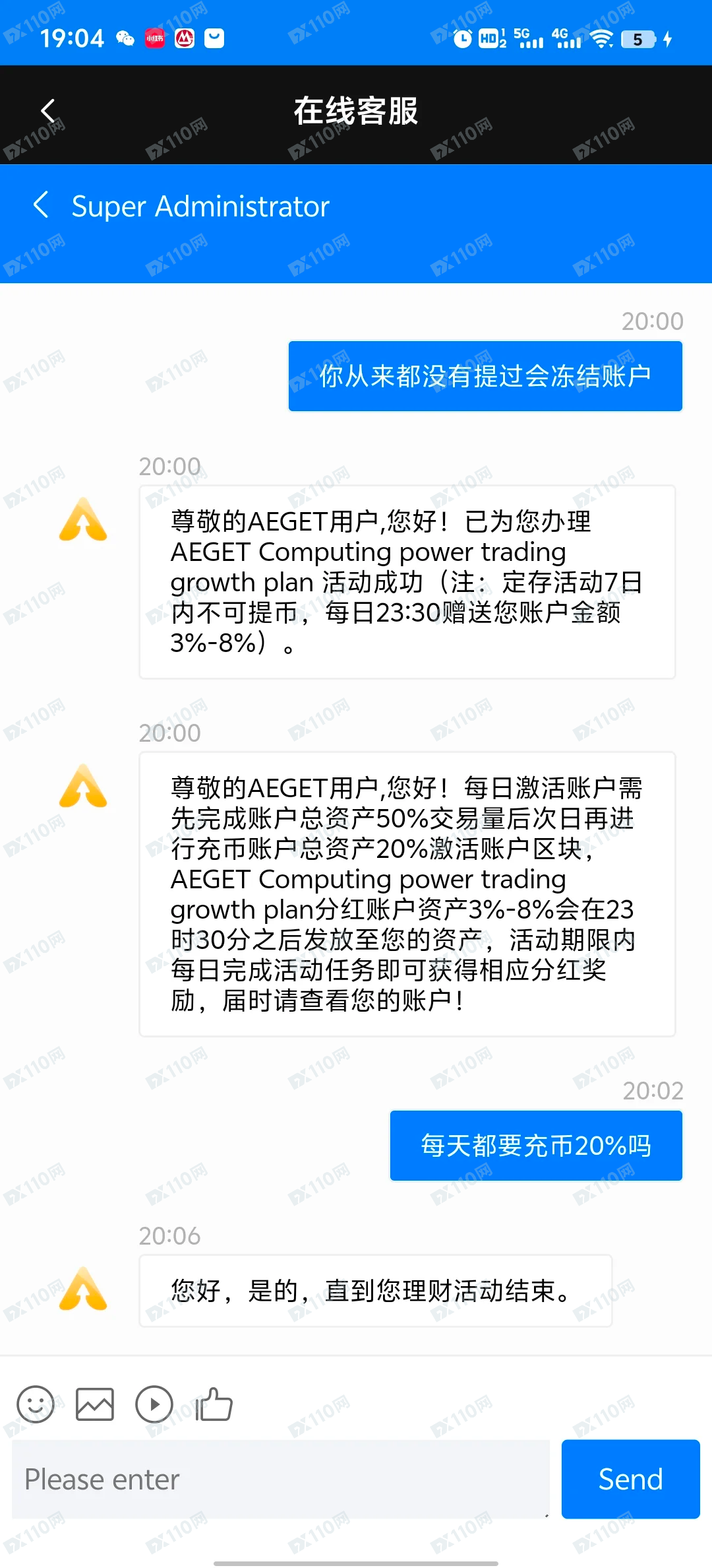 AEGET交易所里面投了十几万资金,现在账户已经永久冻结