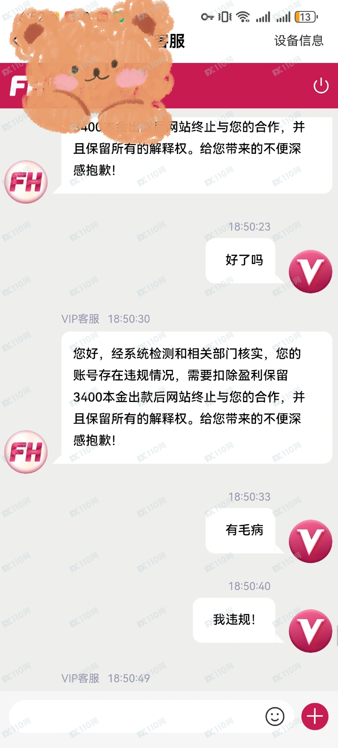 说违规扣除盈利,3400本金说给出,申请了后又拒绝