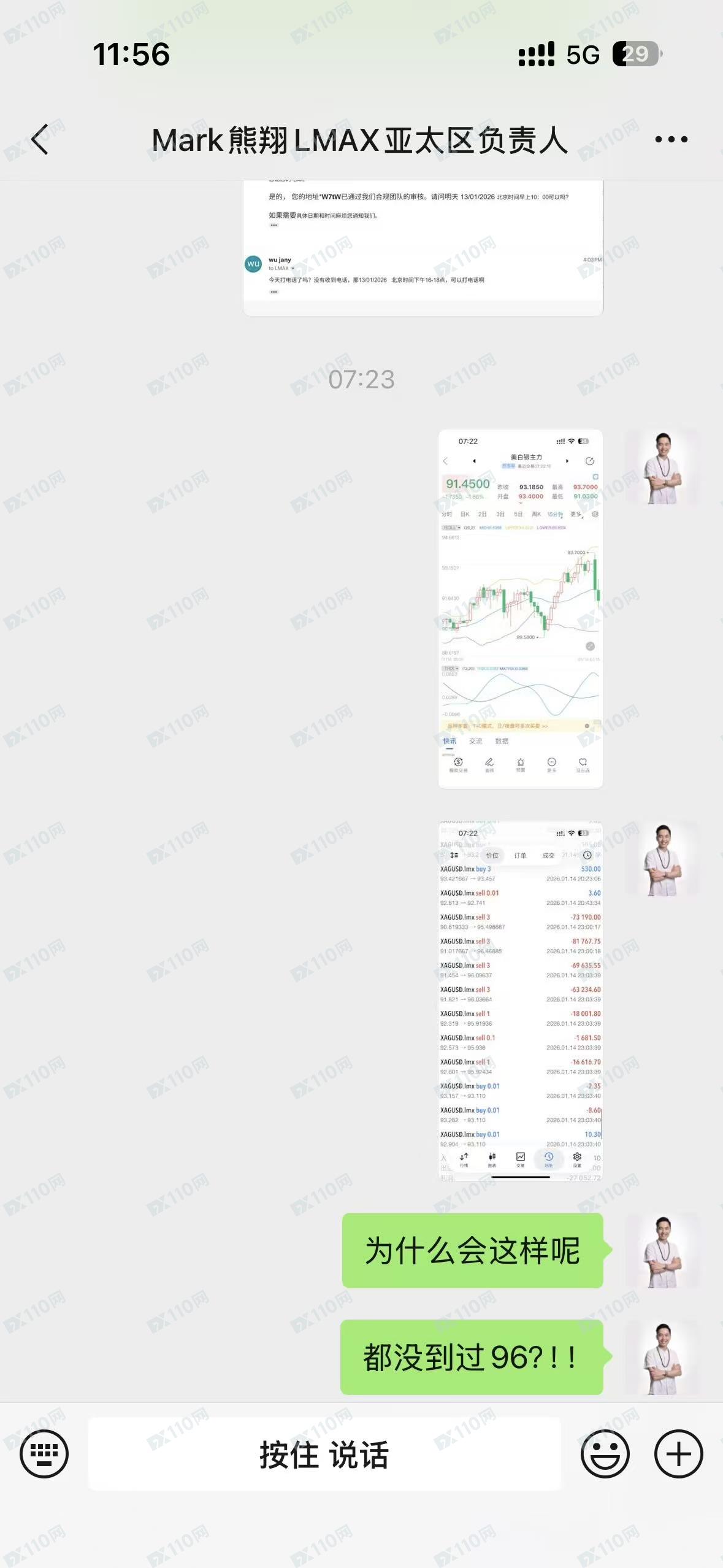 2026 年 1 月 15 日早上 7:00-7:03 期间,交易出现异常情况:当时伦敦银在 LMAX 平台及其他所有贵金属交易平台的最高价格均未超过 93.6 美元/单位,但本人持仓的白银空单(本金接近 31 万美元,折合人民币约 217 万元),却被以 96.4 美元/单位的价格强制爆仓平仓。经核实,当日国际白银市场并未出现 96.4 美元/单位的价格,LMAX 平台存在使用非市场报价(错价),定向爆破客户仓位的明显数据异常行为,直接导致本人巨额保证金损失。