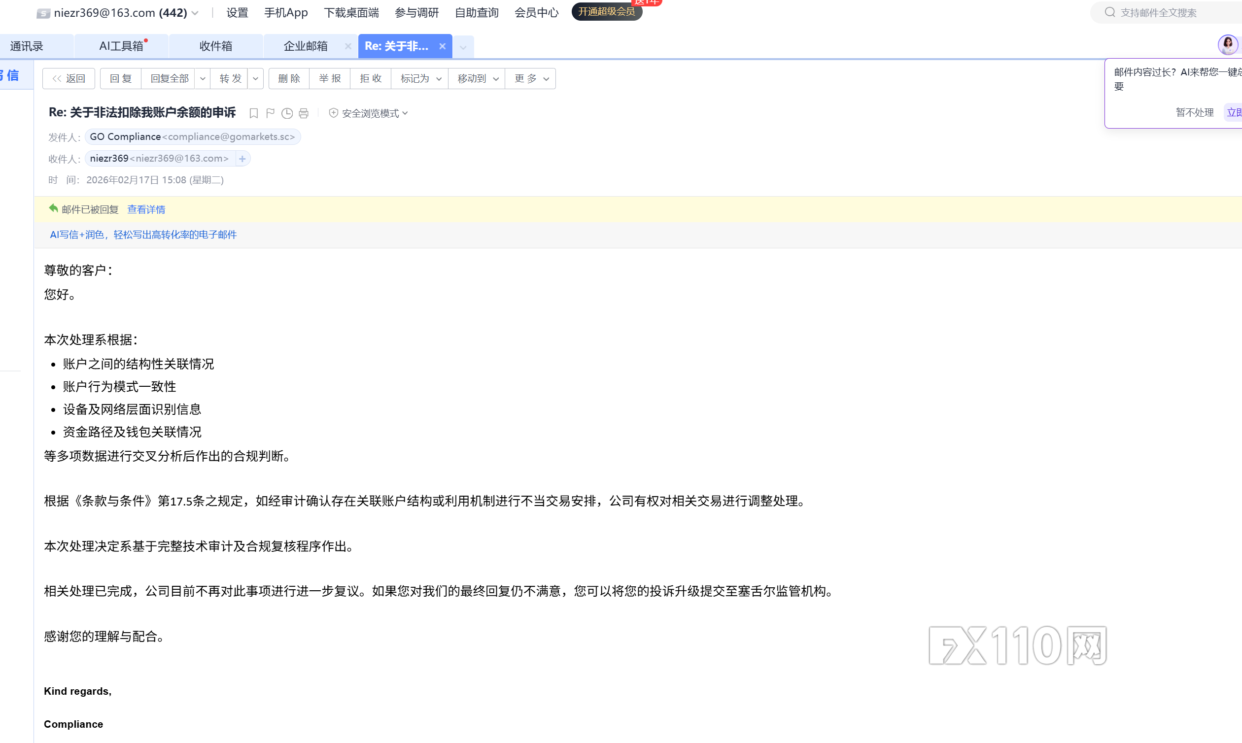 我的账号是81244051,高汇平台无法出金,直接扣掉我账户余额16837.65美金,每次给出的理由都不一样,找客服回复很敷衍,邮件一两个星期回一次