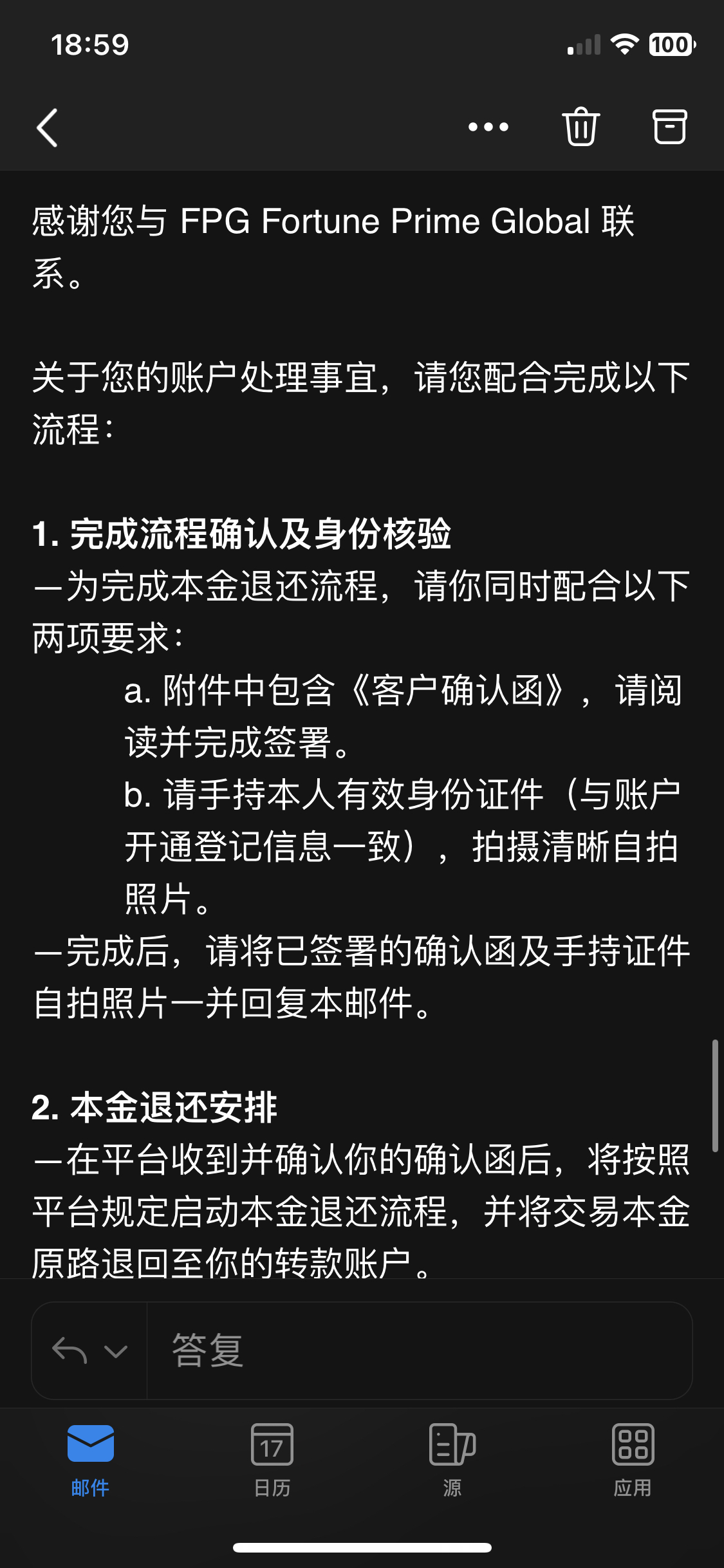 我的资金被扣除了7719.93美金的利润加本金30000美金,FPG后台我已经登陆不上。