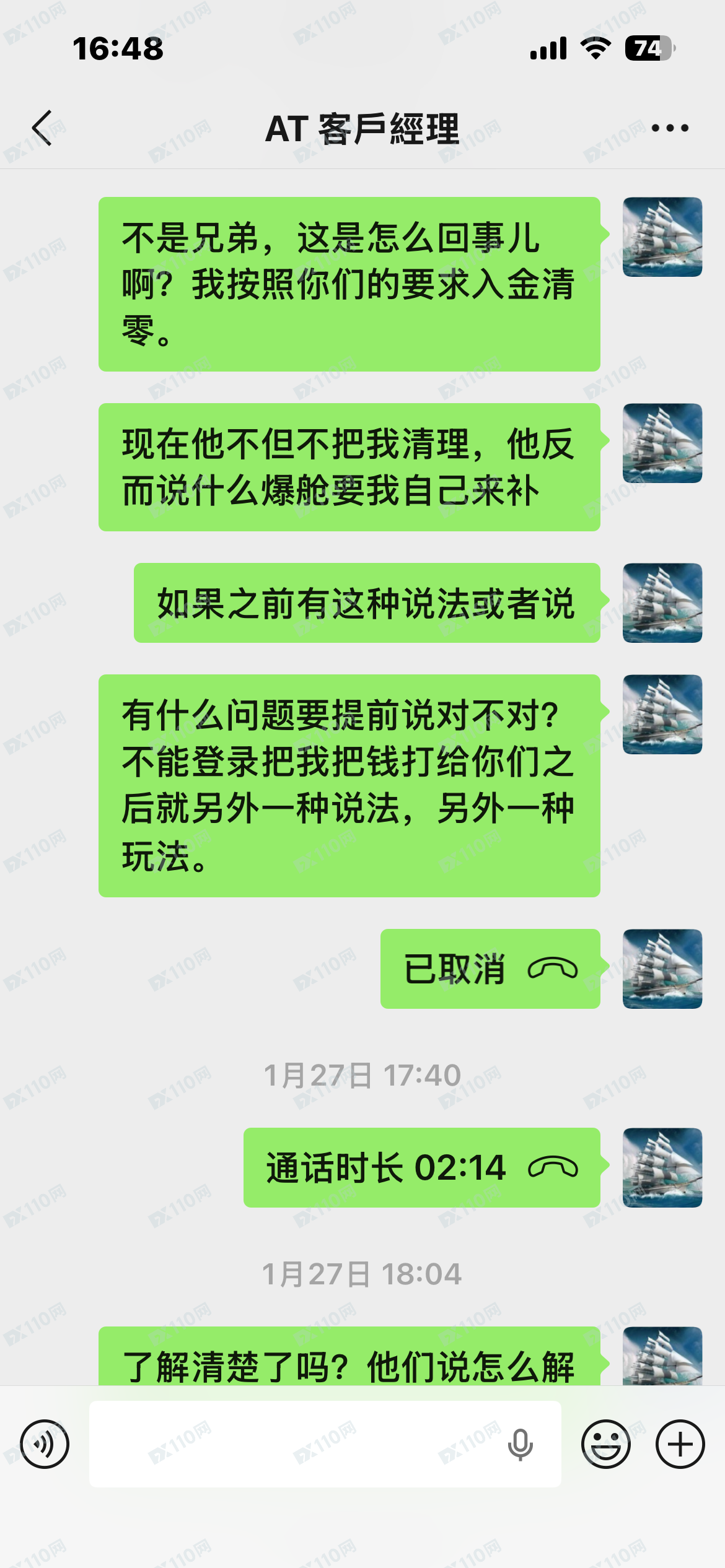 我在这个平台做了几年了 在今年的1月27日 入金了4600美元后 它们以我穿仓 为理由扣除了我2500美元 只让我出2100美元 它们之前规定就是 穿仓 只要入双被的资金 就可以把穿仓的钱清0 之后在多方的调解后 又给我出了1250美元 也就是说 我的本金 还有1250没给我 它们这是在炸骗 所以我要把这种平台爆光出来 让广大股友认识这种炸骗平台 别让它人上当