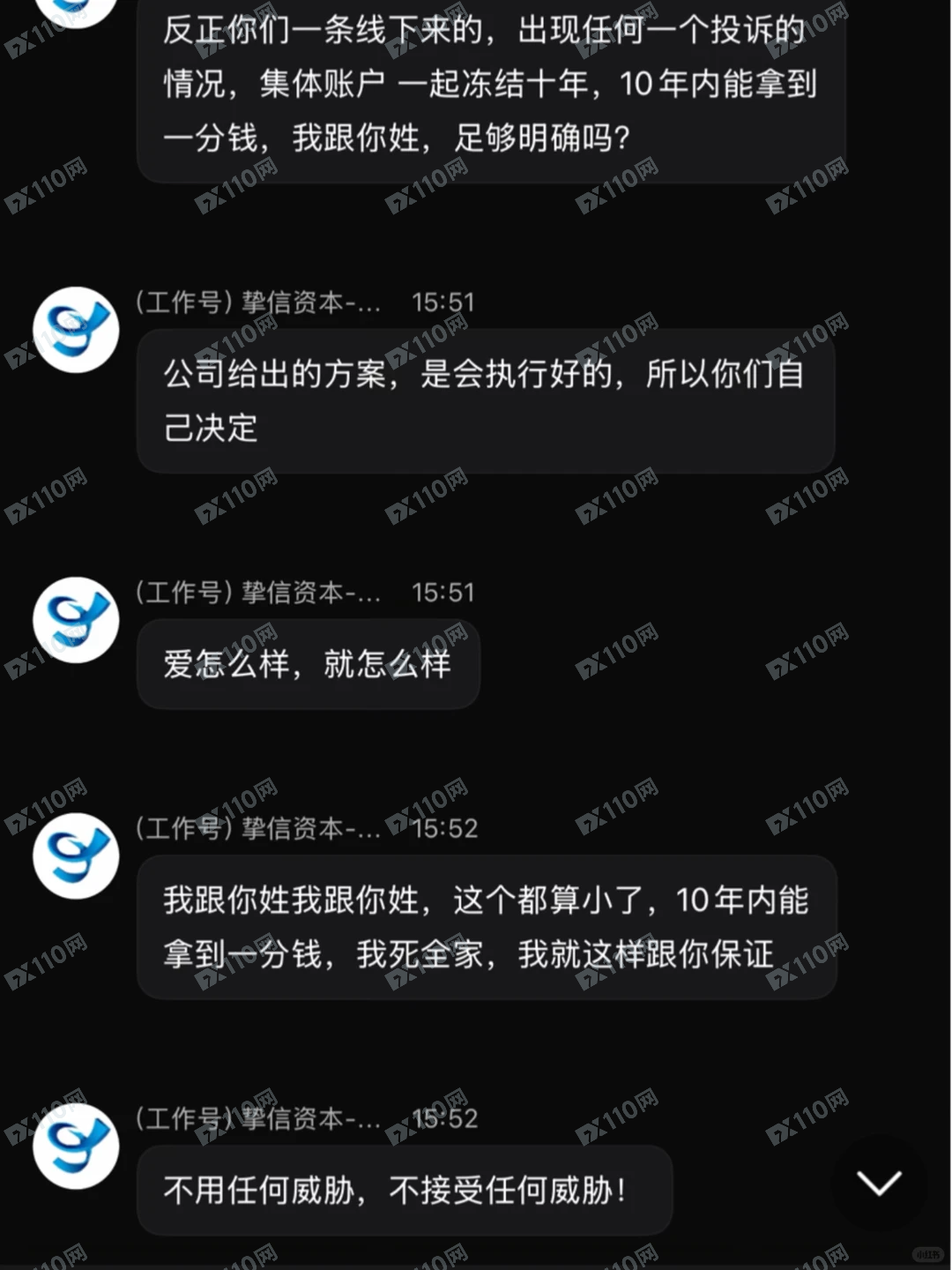 挚信资本,挚信资管,挚信智管 还我本金!!威胁我们收到任何一条投诉就让我们账户冻结十年,本金十年内一分都拿不到!