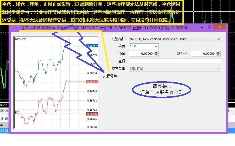 IBFX的虚假宣传误导性宣传材料隐藏了真正的风险:(1)IBFX没有告知客户原因,盗窃客户资金,账户资金没有安全保障。(2)平台报价以及图表走势偏离整个市场报价走势 。(3)交易平台一天断网几十次,断网时间最长超过一个小时.(4)一天内出现很多次账户登陆不正常,右下角显示数据接收正常,但是查看不到账户交易信息 ,这样的故障持续15分钟以上,IBFX技术部门无法解决平台故障。(5)每次平仓,建仓,止损止盈设置,以及删除订单,基本上所有的交易都会延迟1分钟时间,有时候重复交易操作导致账户交易损失。(6)IBFX没有遵守交易执行的政策规则,剧烈滑点没有明确声明,并虚假宣传自己的优势,隐藏实际风险,IBFX的平台故障让客户无法正常操作交易,导致客户损失严重。