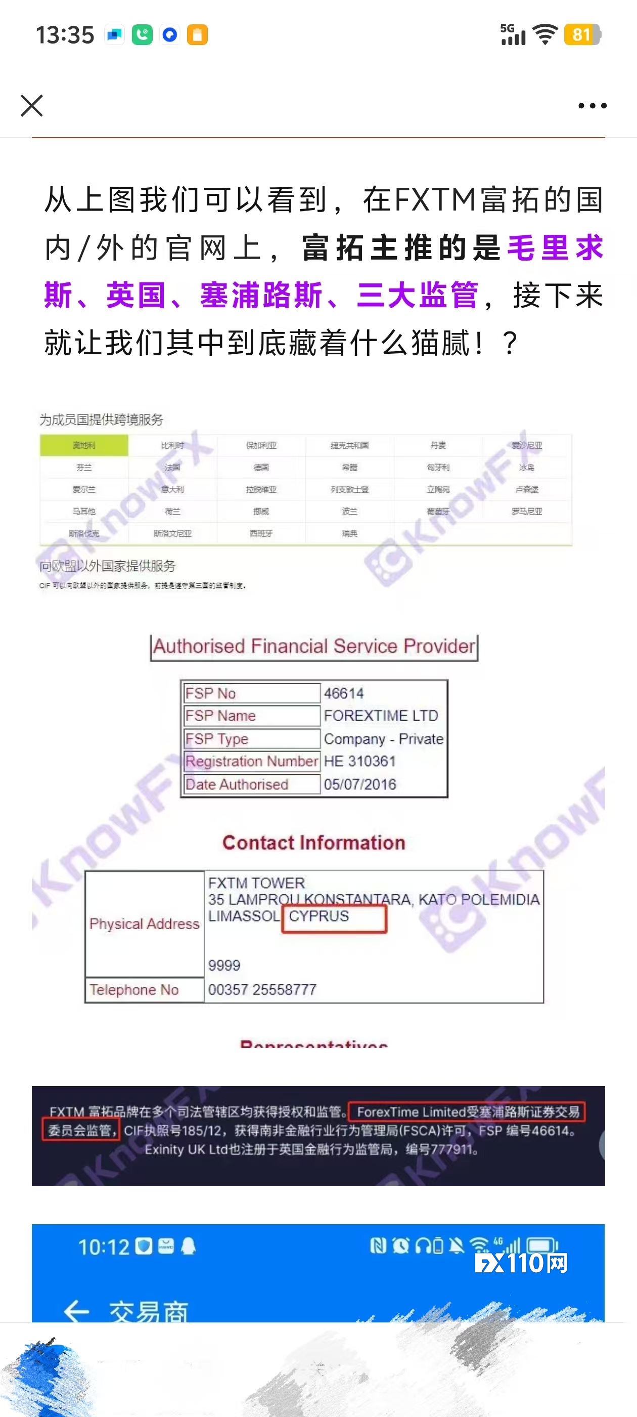 Exinity Limited,富拓FXTM他的监管是挂羊头卖狗肉,去投诉英国FCA根本不受理,他们的所谓的三大监管资金安全,根本就是无稽之谈,满嘴是广告,塞浦路斯提供服务的国家,并不包括中国,南非并不在那三大监管资金安全,而英国监管牌照不监管资金去向。本人就被富拓给坑了,去各大监管投诉根本没用,大家不要上当,富拓的监管是挂羊头卖狗肉