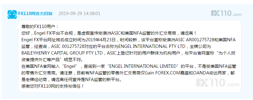 您好,Engel FX平台不合规,是虚假宣传受澳洲ASIC和美国NFA监管的外汇交易商,请远离!