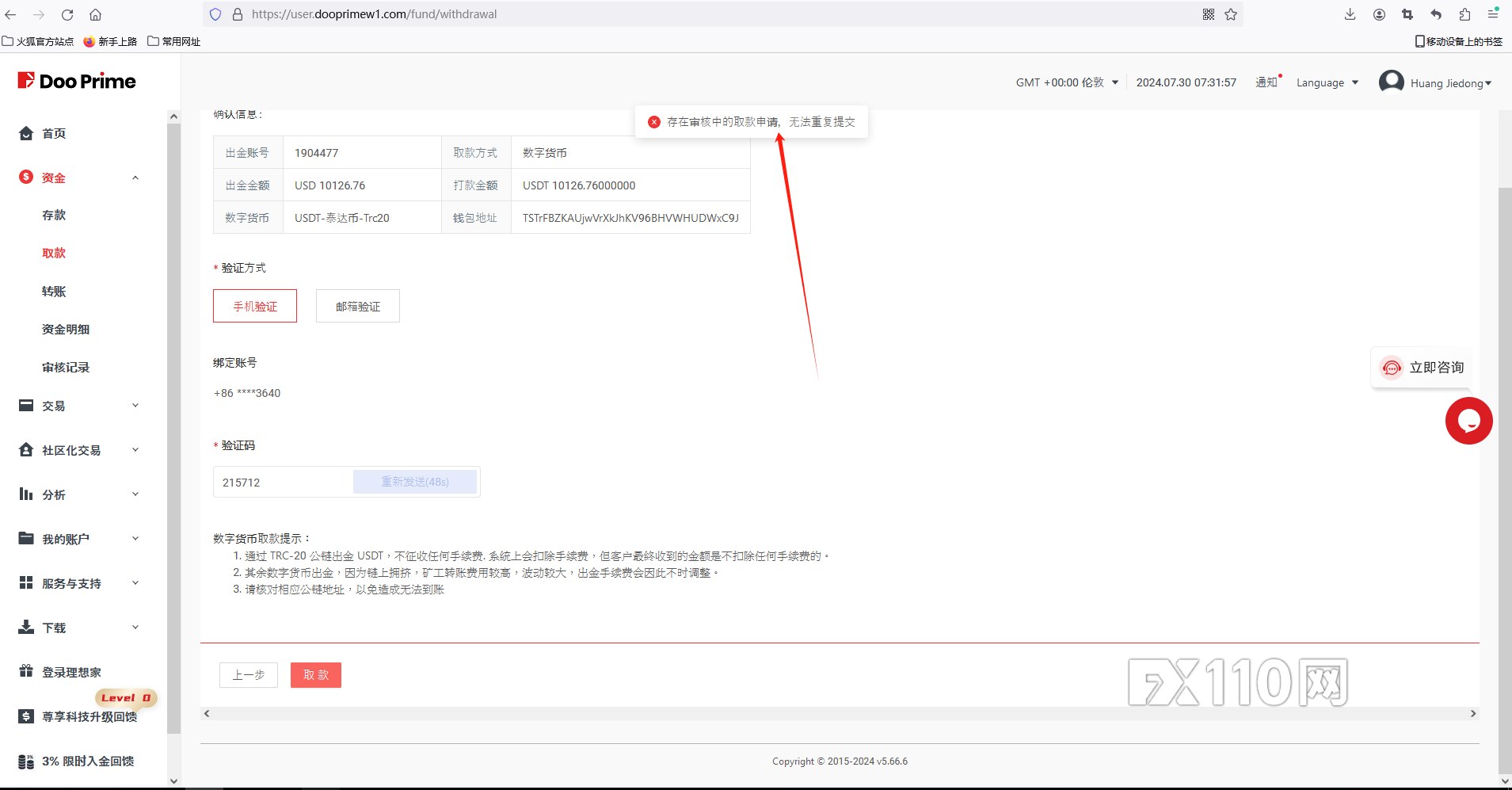 您好,关于您遇到的入金未到账问题,可以在我站维权中心栏目提交一份投诉,提交投诉链接:https://weiquan.fx110.com/complaints/submit。