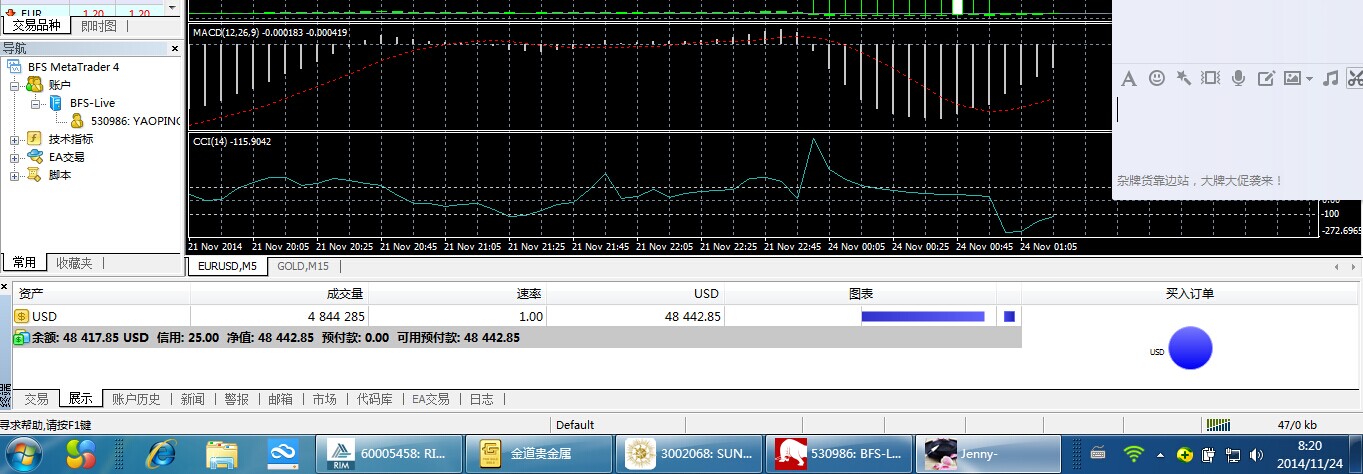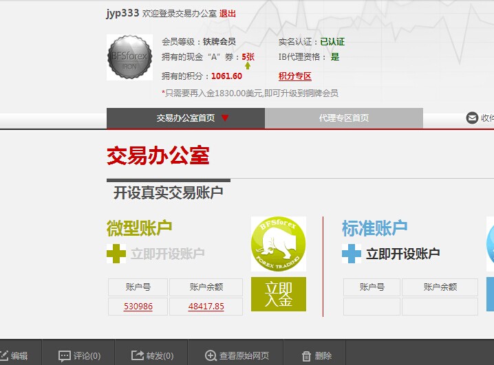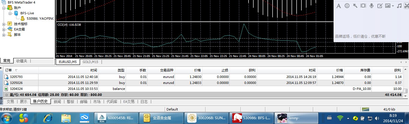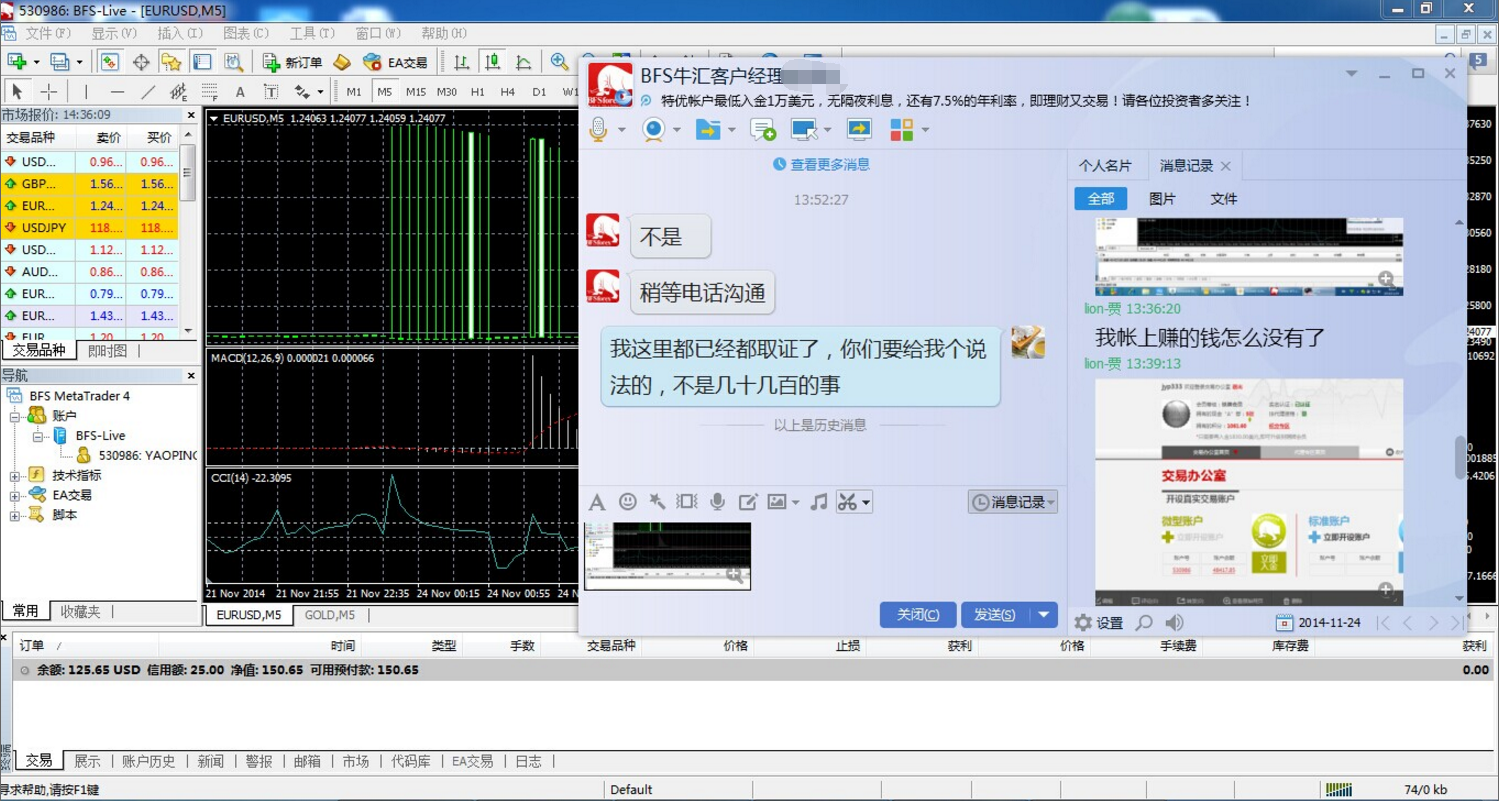我11月21日星期五晚下的单,等星期一上午8点后在正常交易时间平了仓,帐户余额为48417.85美元。等我下午登录再准备交易时帐上钱只剩一百多了,而且把我的交易记录都给删除了。后来去询问,对方说是银行出了问题,要去合规部门审核,但至今没给消息。