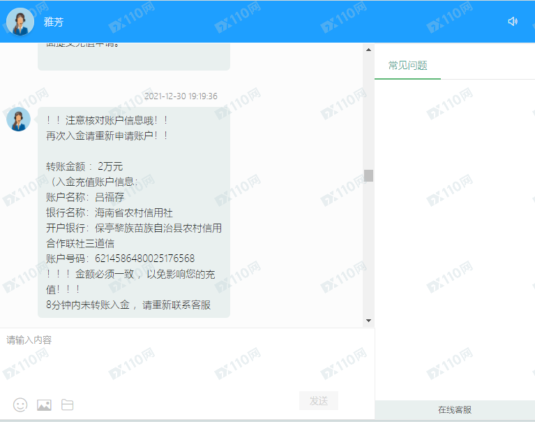 最近网上认识一个女的,聊了十来天。这两三天她叫我帮她操作,说自己不方便,说是内部消息,稳赚不赔。后面问我有没有注册,要不要跟着一起赚钱,我说我没钱。我说跟赚这种钱无缘,她说充值个几百千把块也可以一天赚几十上百块。还说可以帮我充值,后面我说你帮我充值,她说自己没资金了,呵呵。这不是杀猪盘是什么。恒宏交易所网址:www.88887.club 和 //47.96.102.248:807