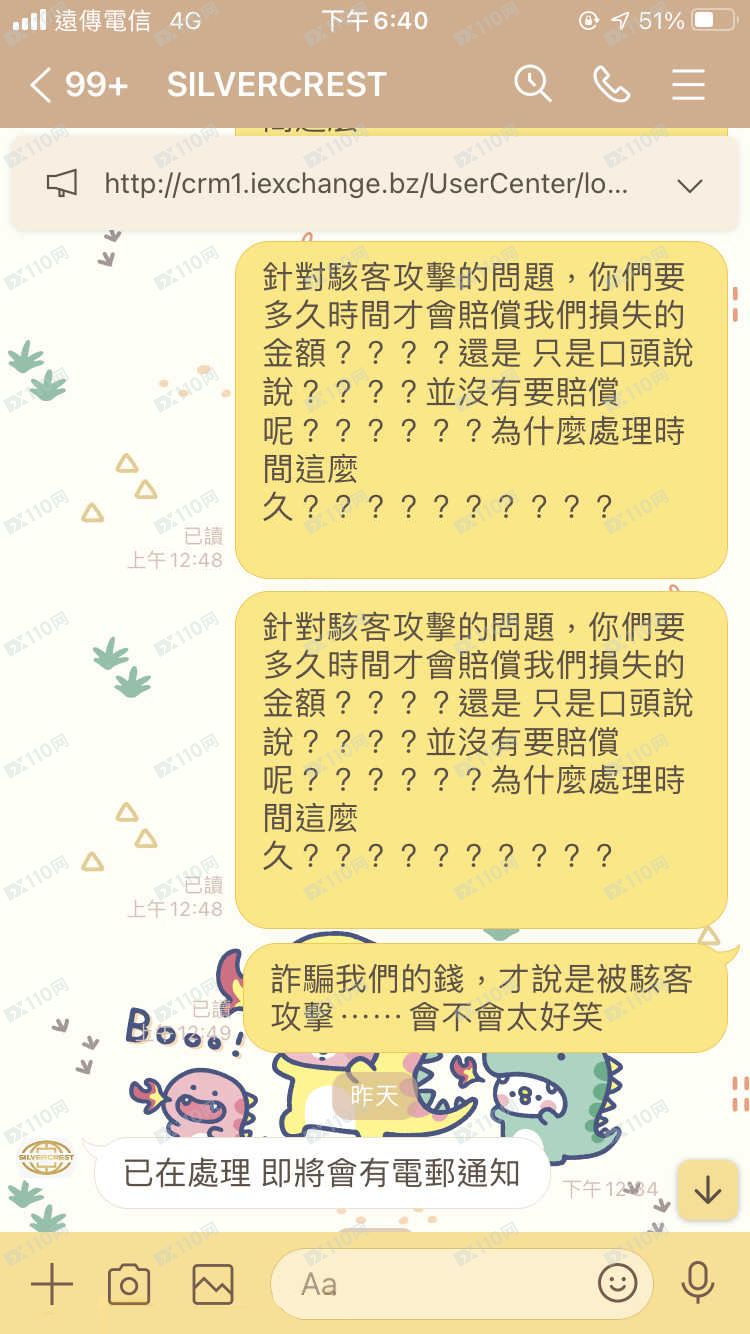 silvercrest 交易商人前人後不同样,说好会赔偿,结果呢!直接把MT5的帐户断开⋯⋯