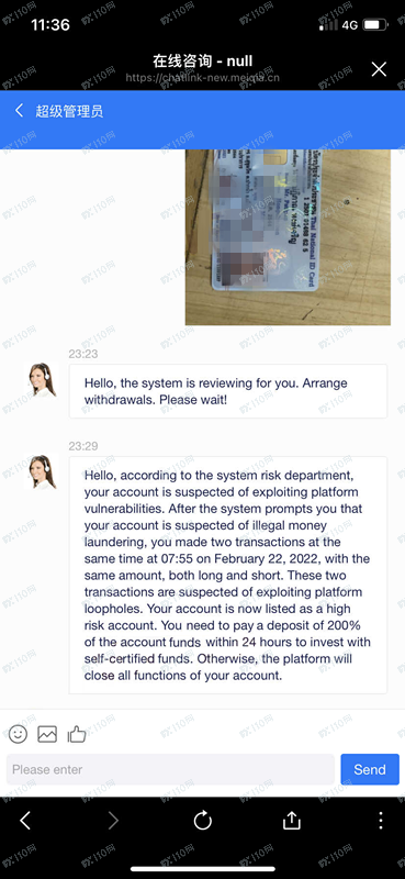 就是一开始我转了钱,那天没有交易,我提款的时候,它告诉我不要提款,后来它说我的账户在洗钱的范围内,所以我必须支付50%才能提款。可以正常存钱了,当时我账户里有3117.79$,要付一半,1558.89$,约55,000泰铢,我已经通过我的银行账户支付了,属于高风险资金洗钱,必须另外支付 200% 的资本金。
