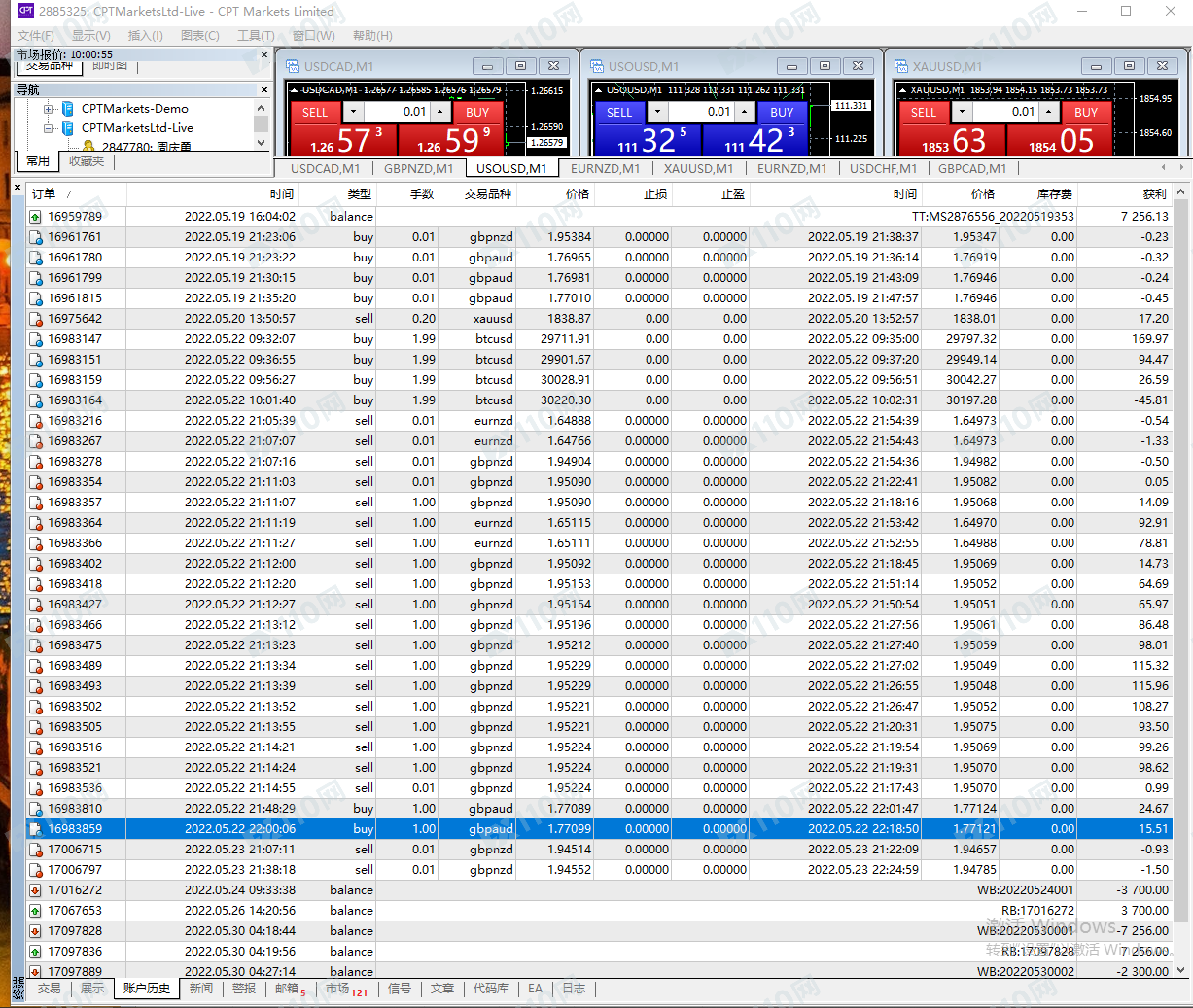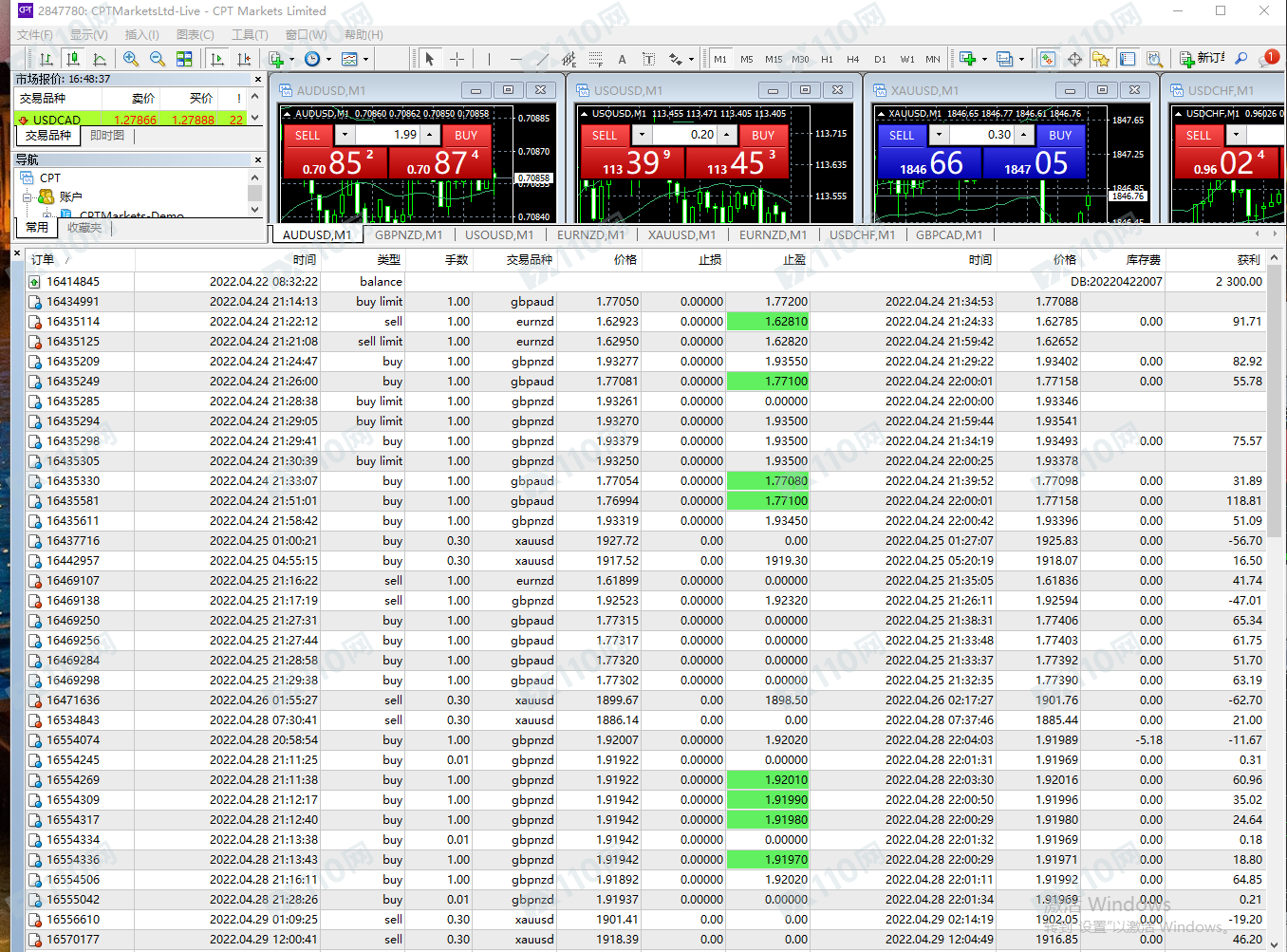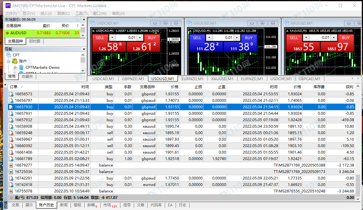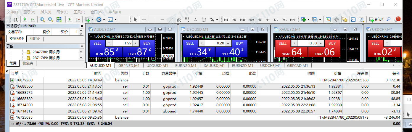 1.本人4月22日入金2300美元 。共盈利6400.35美元 交易账户:2847780 ,2871769, 2876556, 2885325 一个交易账户做段时间就会滑点,所以陆陆续续开了4个交易账户操作! 幸幸苦苦交易了1个多月 盈利一分不给出金 ,。!2.CPT 就诈骗公司 以下我的所有账户交易记录和入金证明
