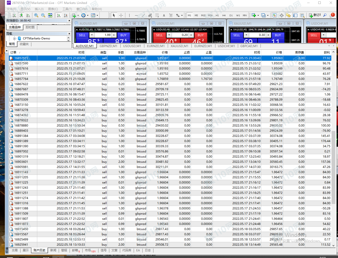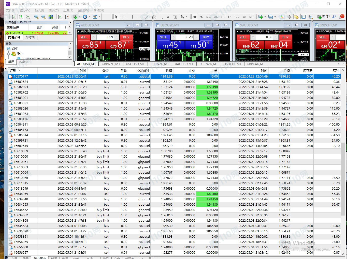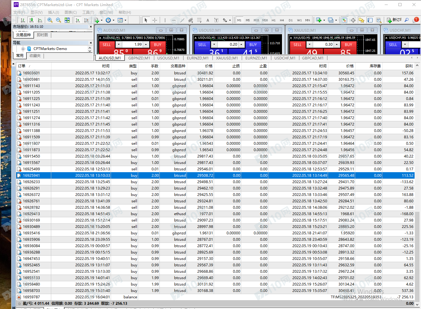 1.本人4月22日入金2300美元 。共盈利6400.35美元 交易账户:2847780 ,2871769, 2876556, 2885325 一个交易账户做段时间就会滑点,所以陆陆续续开了4个交易账户操作! 幸幸苦苦交易了1个多月 盈利一分不给出金 ,。!2.CPT 就诈骗公司 以下我的所有账户交易记录和入金证明