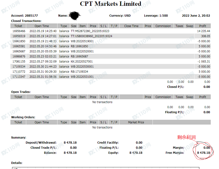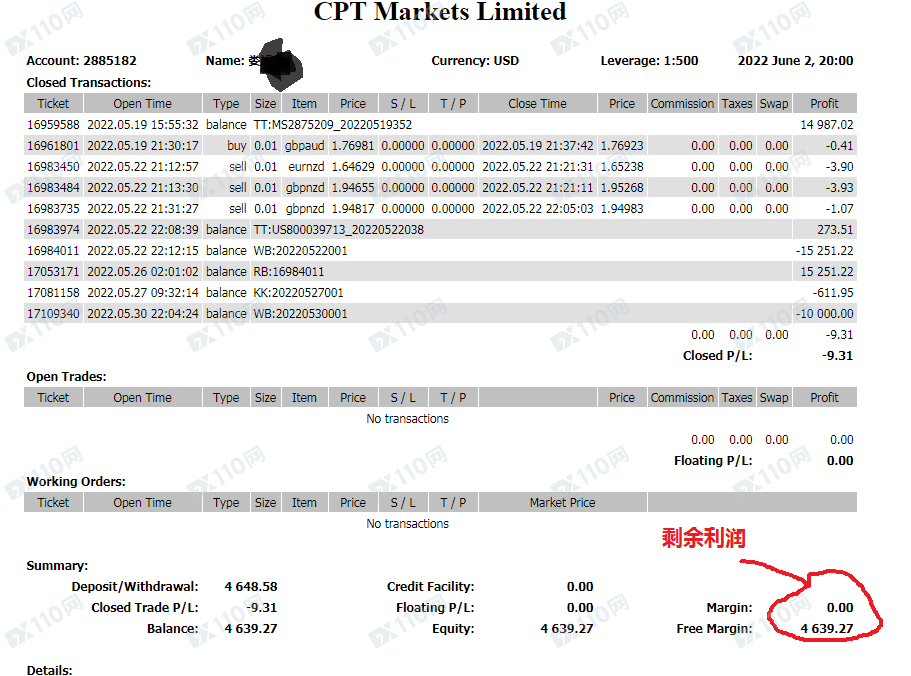 本人实名举报 cpt平台利润不给出 两个账户总共15000美金左右 本人交易都是正常交易 一个账户入金5000 美金 另外个10000美金 5000美金的账户赚了9000多美金 另外个赚了4000多美金左右 后平台发邮件说违法交易 无凭无据 公司又不在国内 就一句话 这分明就是店大欺客 就是扣除利润 只能出本金 附上我的交易记录 群众的眼睛 是雪亮的 ( 账户2885177 2861402 2872280) 这三个是第一个账户入金5000美金的 同名子账户 ( 账户 2885182 2868270 2875209)这是第二个账户入金10000美金的 同名子账户 说是FCA监管 我看资金一点都不安全 都是起早贪黑挣的辛苦钱 说扣就扣
