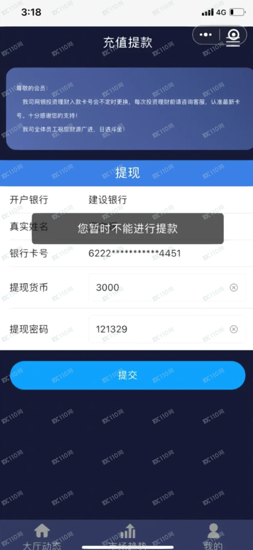 事情是这样的,之前通过大鹏美术线上学习,后来大鹏美术说破产了被中泰证券收购,然后短信通知好几次要给学员退费,然后就下载了这个证券app,后来跟着做任务转账给他们有收益,收益的部分是我们退的学费,在提现收益的时候无法提款,钱也在app提不出来了。