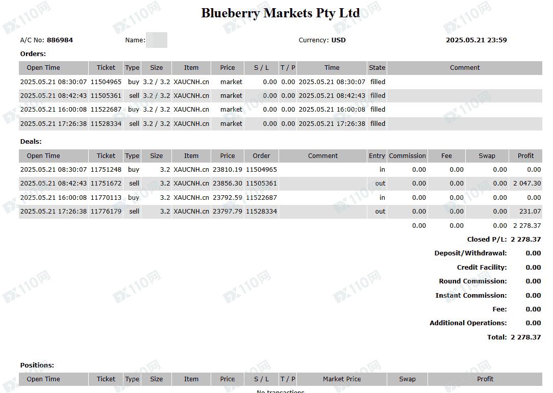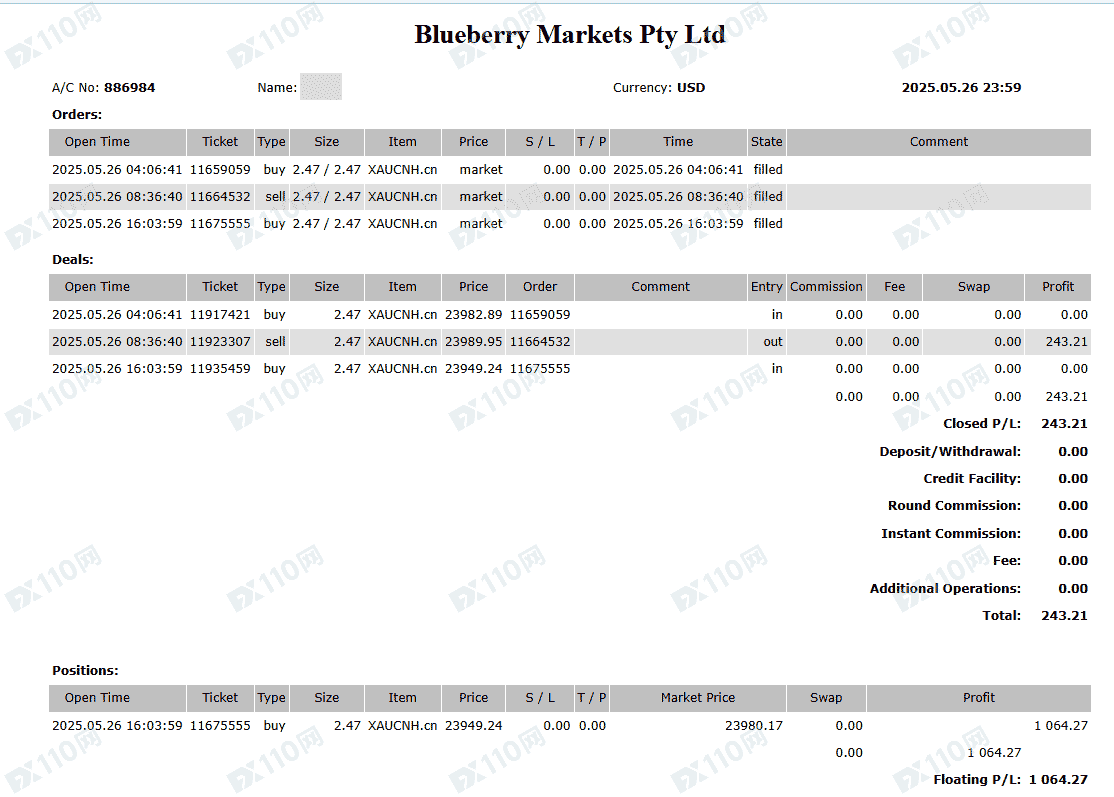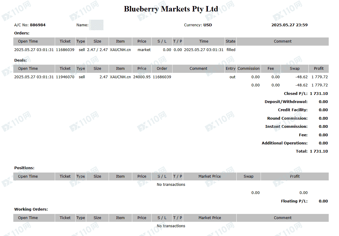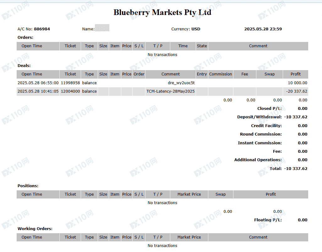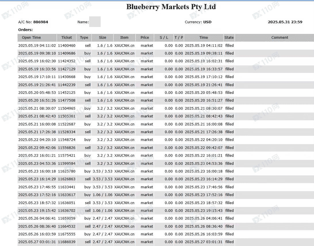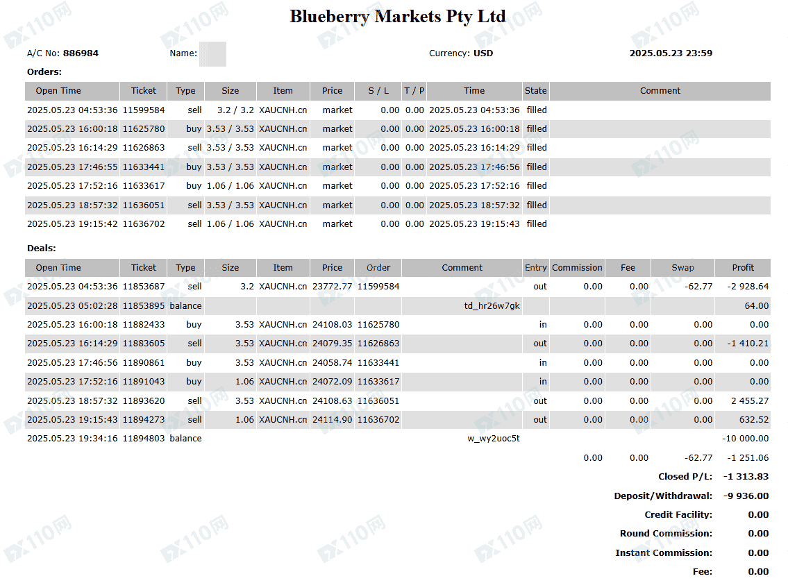 MT5交易帐户:886984,纯手工单,交易时段北京时间9-30至零时2点左右,入金一万美元(国际电汇),先亏后赚,提款时被栽定交易时段利用流动性不足,盈利清零