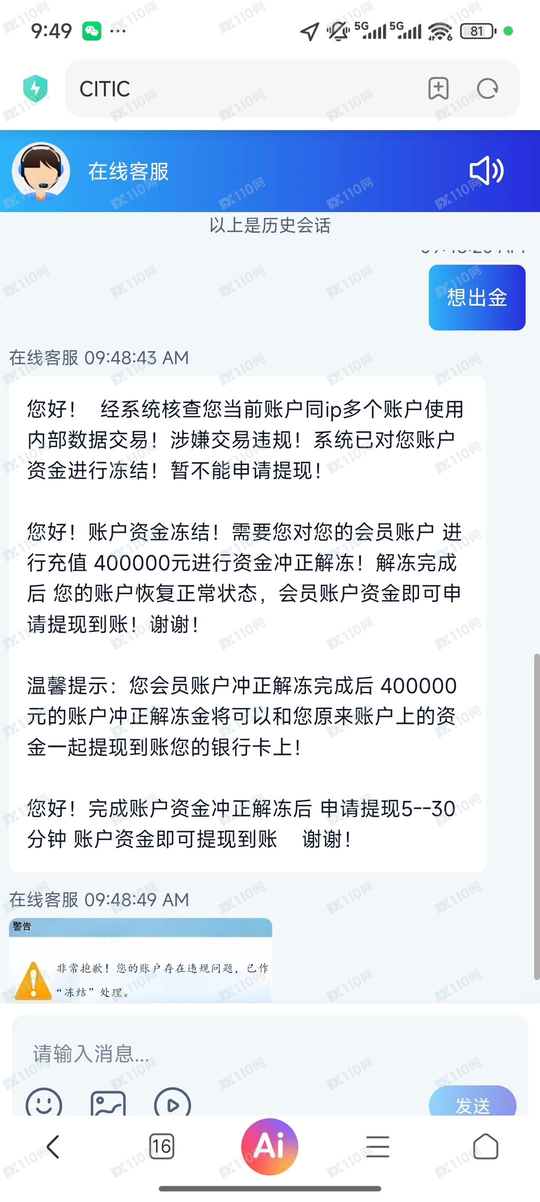 没注册没登录,随便问出金就会说被冻结,https://europesan.org/这个冒充中信证券的诈骗网址大家不要上当