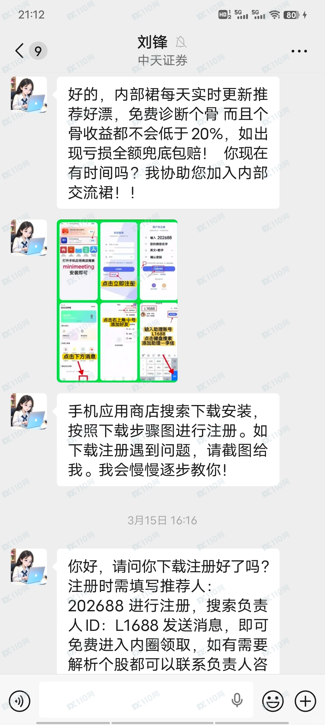 1.于3月15日接到一个电话,说先带你炒股盈利,亏损他们包赔,让去手机市场下载聊天软件minimeeting。下载后发了一个18元的微信红包。