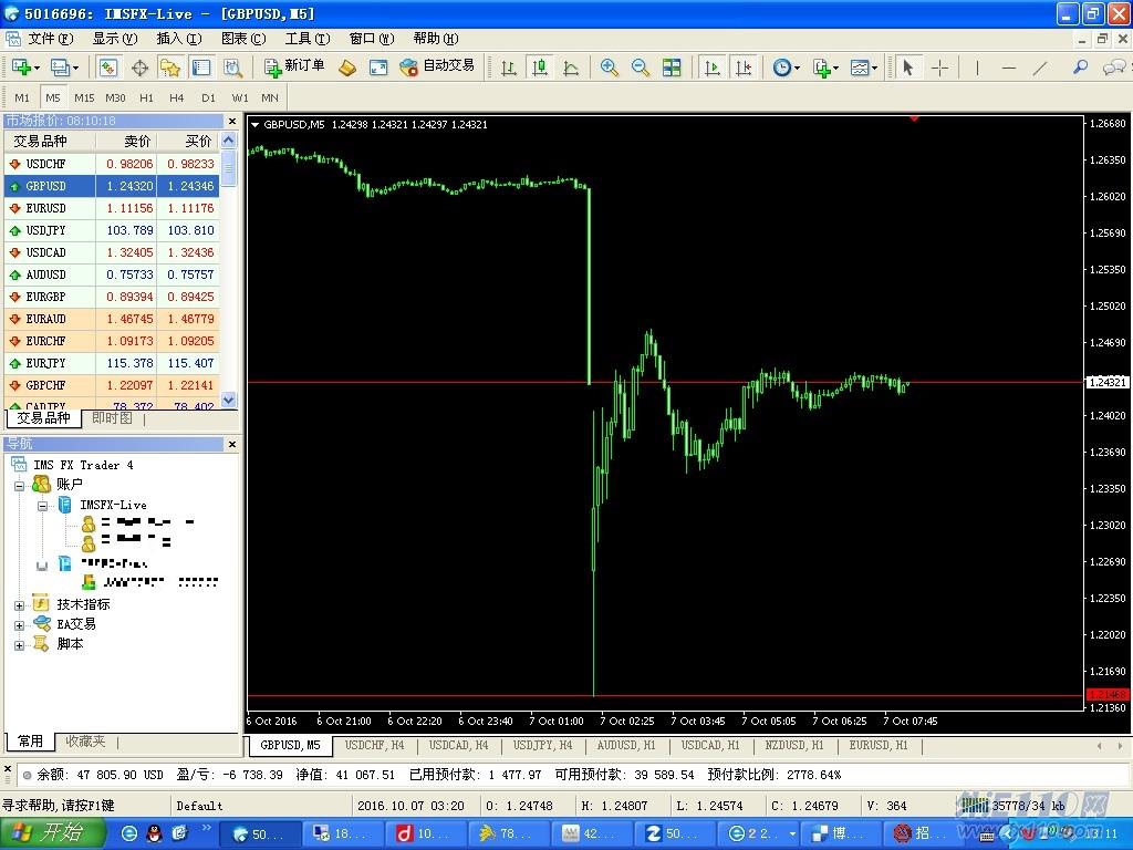 第二次是10月7日英镑早盘出现巨量下跌,其他平台英镑最低价均跌破1.2整数关口,我们早盘要等待跌破1.2整数关口出掉我们的单子,但是该平台最低点为1.21,其流通商报价分别为1.131.14左右,价格相差了八百多点,造成单子没有到止盈点就平仓了,损失一万多美金。