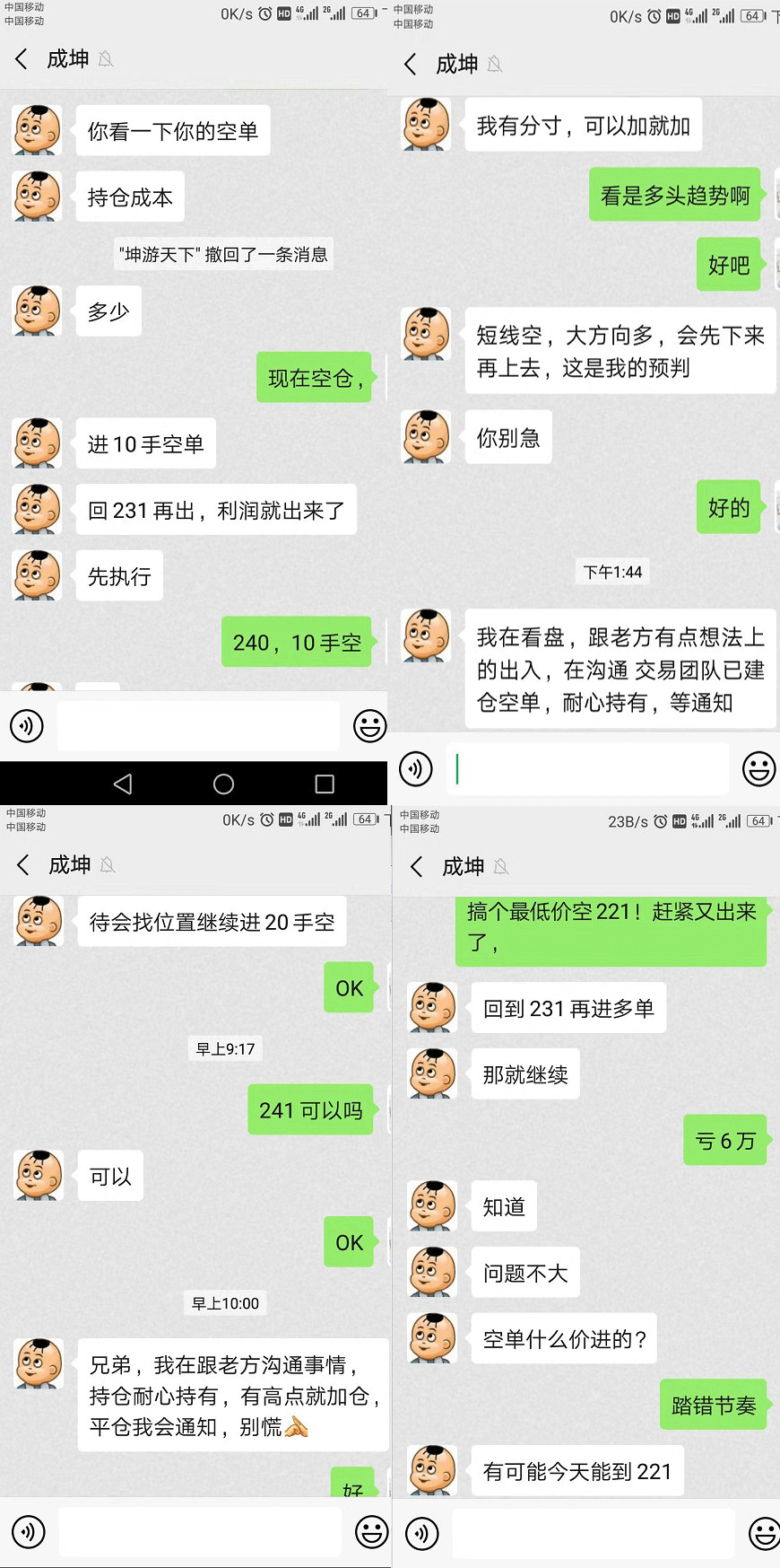 由于刚接触软件,操作不太熟练,错过好几次行情,咨询客服,客服就把老师微信推送给我,由老师一对一指导,这个老师也很热情,先了解了我的仓位资金情况,还要求截图给他看账户情况,说下周一[12.16]布局大行情,让准备多一点资金才能把握大行情,在老师不断关切下,我东拼西凑入金加仓到24万,然后周一开始按照老师指导操作,结果连续三天都是做错方向,导致亏损严重。